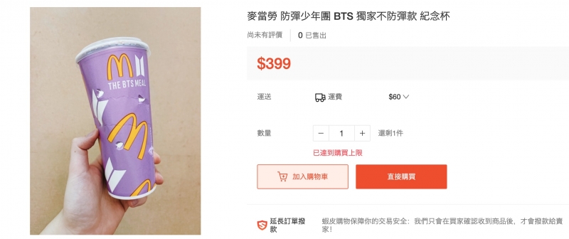 ▼國外ebay上的二手「The BTS Meal」套餐包裝售價高達台幣2000元,引發網友討論。
