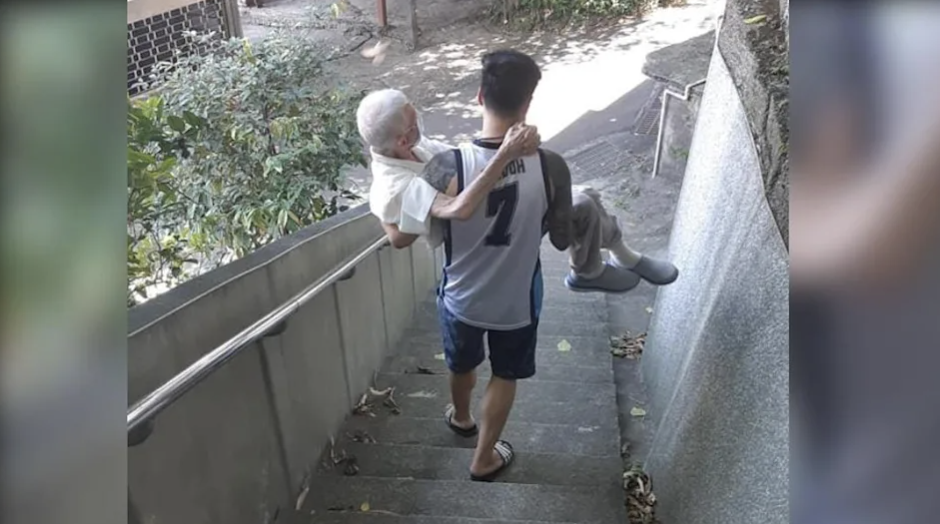 孝孫「公主抱」阿公下山打疫苗 鄰居直擊背影動容:人間最美風景!