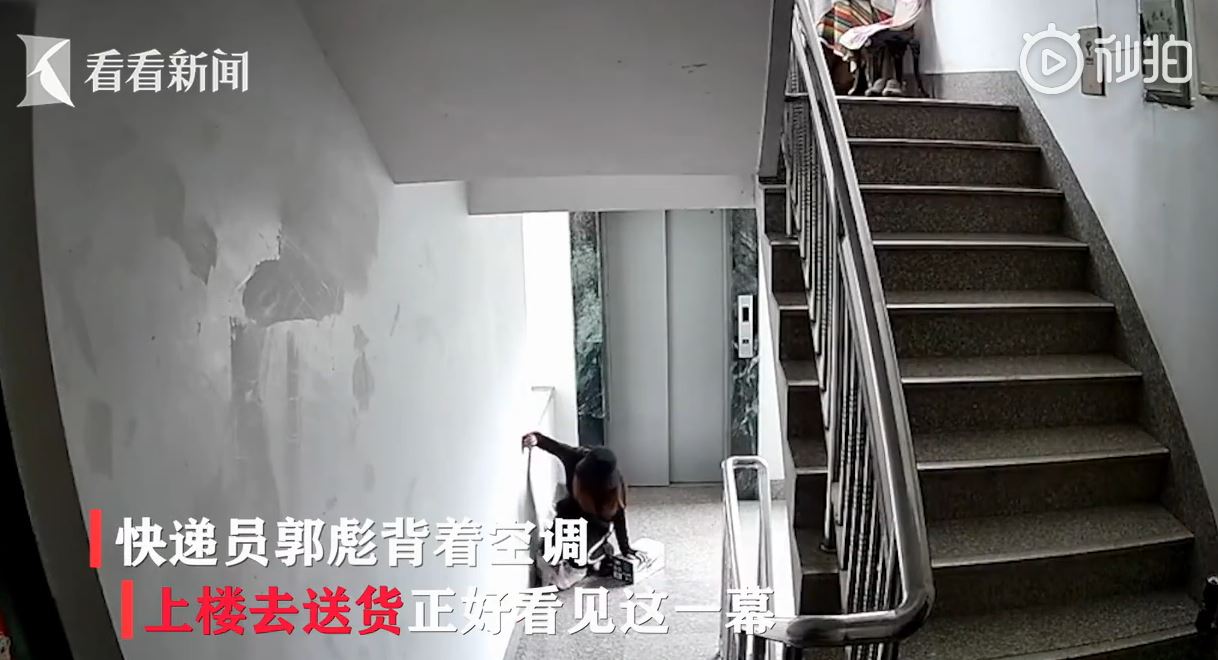 ▼遼寧省大連市的一名王姓女子訂購了一台冷氣機,她跟送貨員郭彪鄭約好時間來安裝。那天郭彪鄭如約送來冷氣機,但在樓梯間遇到了一對母女。那對母女剛剛買菜回來,可能因為天氣太熱,媽媽突然昏倒在地,7歲的女兒急得不行,郭彪鄭連忙放下冷氣機救人。