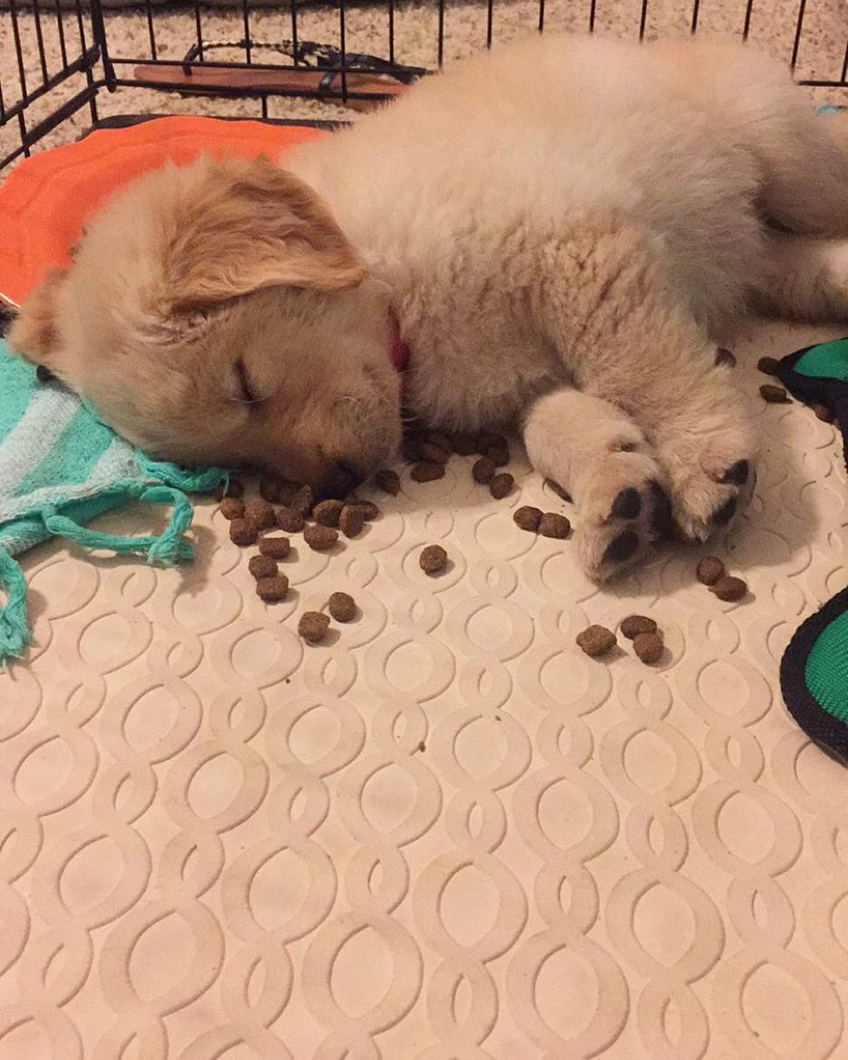 ▼吃著吃著睡著了,連夢裡都是狗糧的味道。