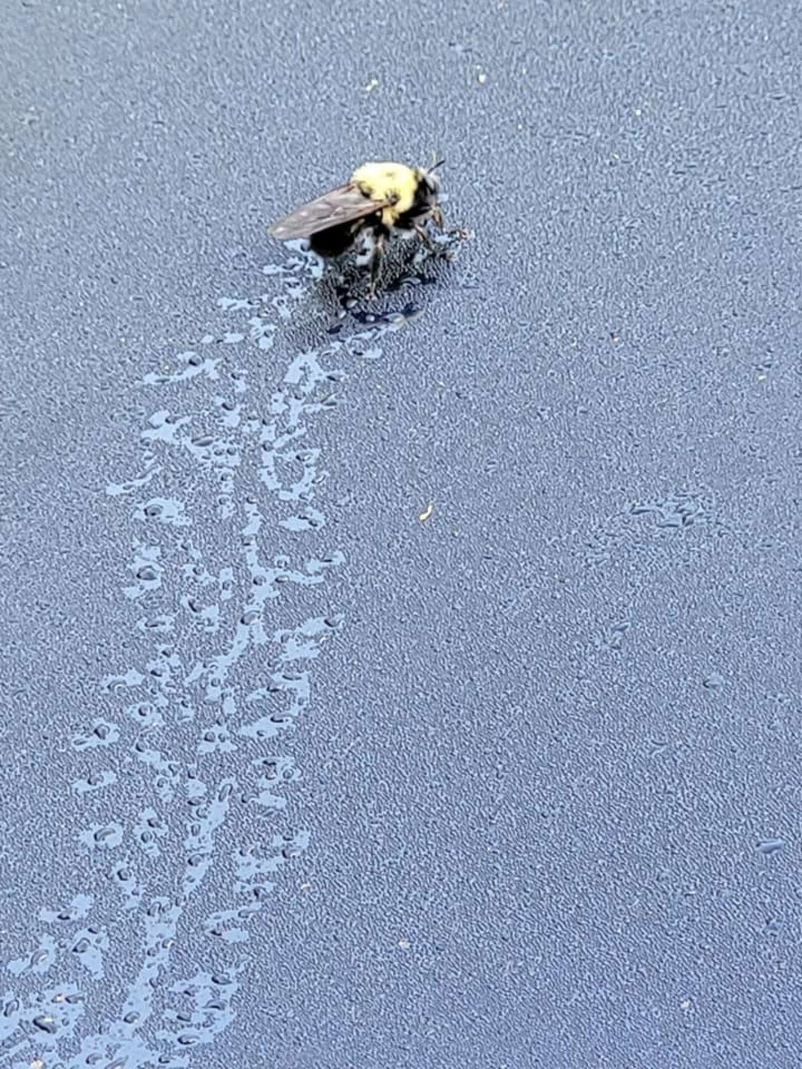 我路過!清晨大黃蜂爬過車窗 踩著露珠「留下一串小腳印」她驚喜拍下:要去哪~