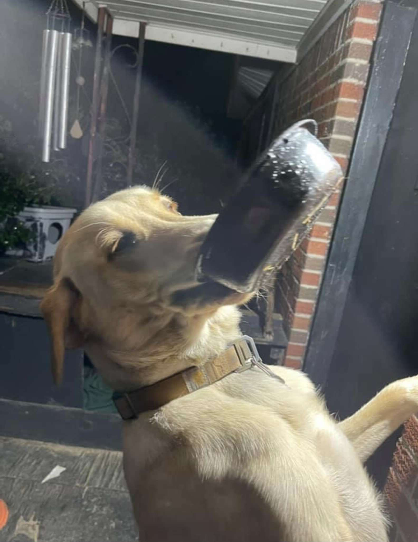 ▼有一次Levi咬來一個啃了一半的螺絲盒,Lori看到後嚇翻了,擔心牠誤食螺絲,連忙帶牠去看獸醫。幸好Levi沒有吃下異物,Lori這才鬆了一口氣。剛開始Lori以為狗狗找來那些東西是太愛玩,後來才知道牠只想把自己搜集到的最好的東西送給飼主當禮物。