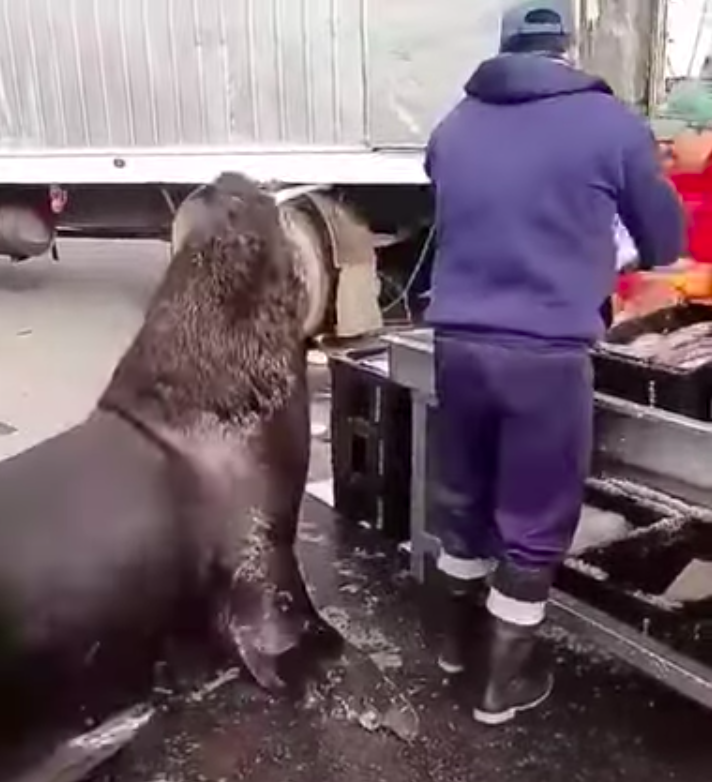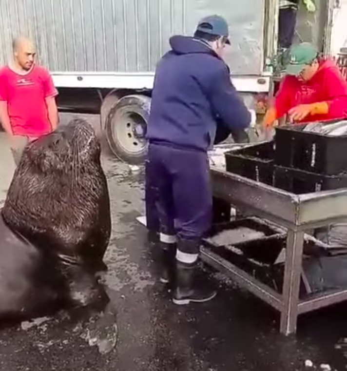 2021年07月27日連海獅都知道魚市有美味~下面這隻體型巨大的南美海獅(South American sea lion)非常聰明,牠看到很多人在海邊的魚市工作,就決定上岸來看看。畢竟自己抓魚太累了,到魚市賣萌就能填飽肚子,何樂而不為呢?