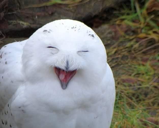 ▼除此之外,還有一些貓頭鷹露出笑容的照片,瞇起眼睛、張開嘴巴的貓頭鷹充滿喜感。