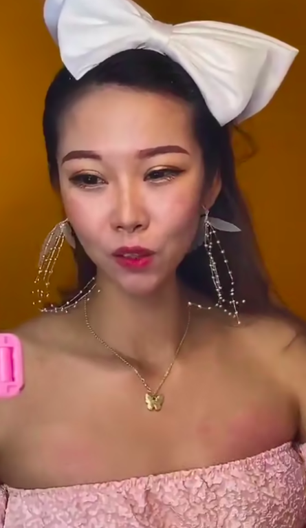 ▼她在直播過程中調整濾鏡和美顏,只見她的膚色越來越黯淡,皮膚不再完美無瑕,臉上的妝容也越來越重。