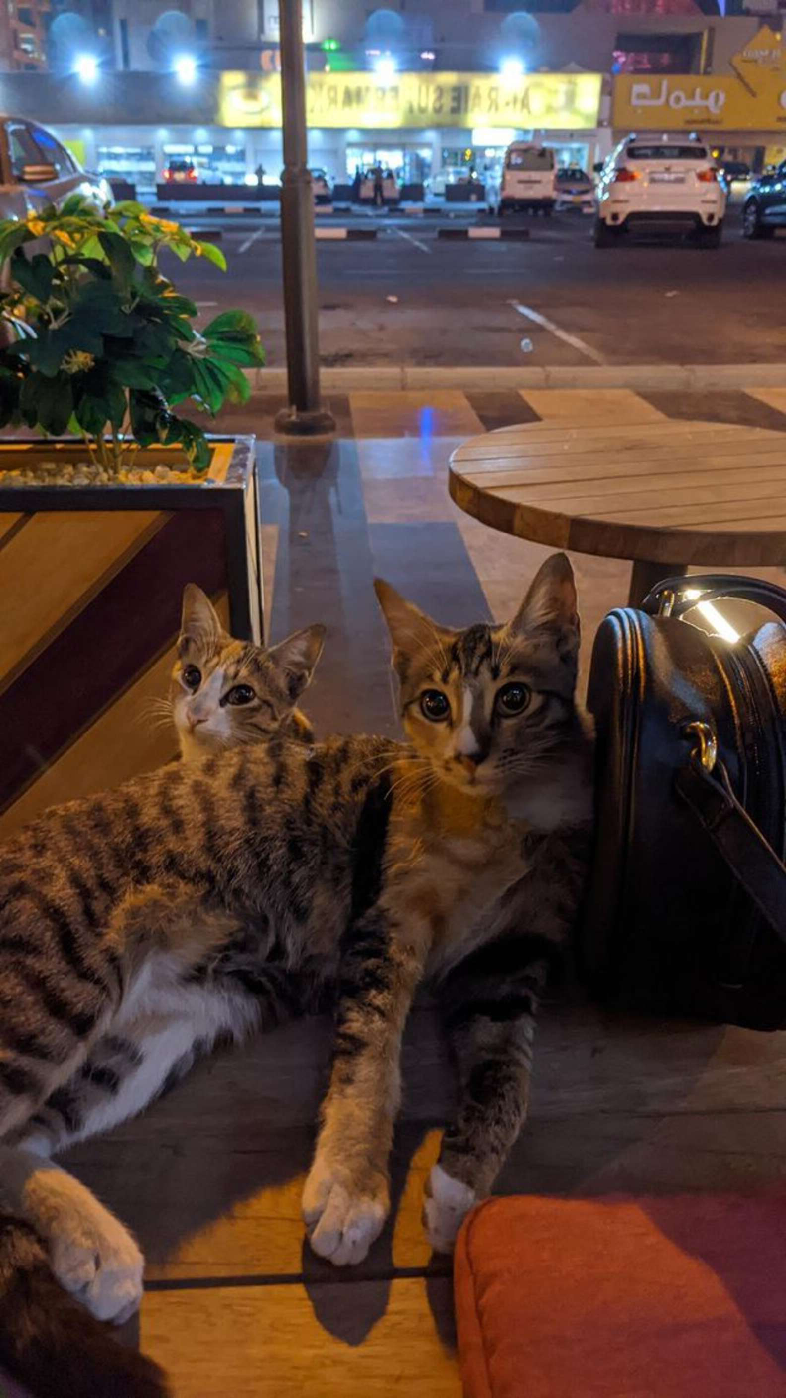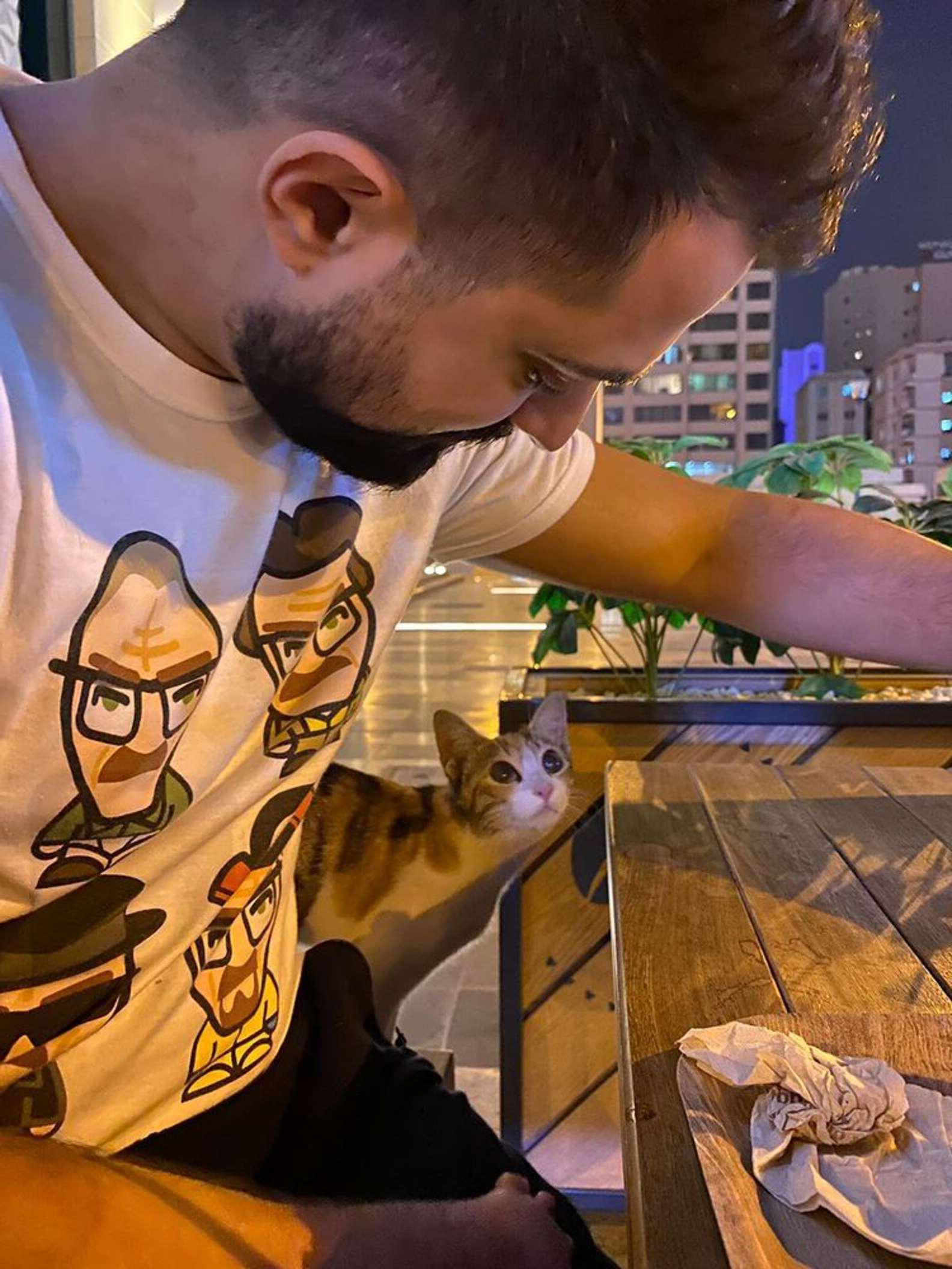 2021年08月03日貓咪選好「長期飯票」了!科威特一名男子Basil Akwan和女友經常會光顧同一間咖啡店。這間咖啡廳的室外有遮陽傘和座椅,2隻三花浪貓經常在這裡休息。Akwan和女友發現牠們後,就會分食物給牠們吃。貓咪逐漸喜歡上了Akwan,每次他們來喝咖啡,貓咪就會跳到他們的桌子上,陪伴在他們左右。