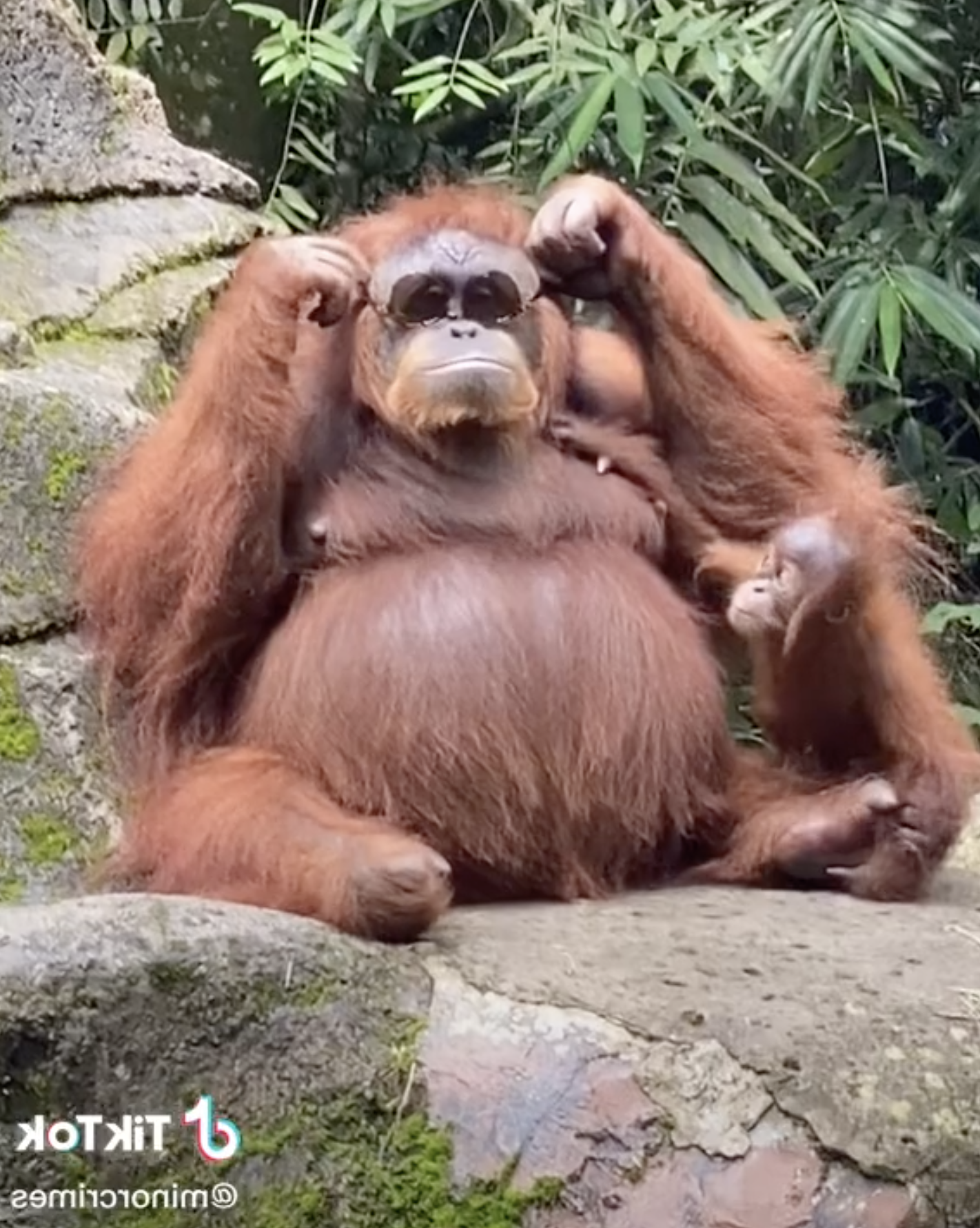 潮度滿點!紅毛猩猩撿到「遊客墨鏡」 機智戴上還擺Pose:好看嗎?