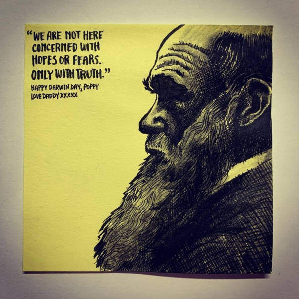 ▼「『我們在這不是出於希望或畏懼,而是為了真相。』達爾文日快樂,Poppy。愛你的爸爸。」