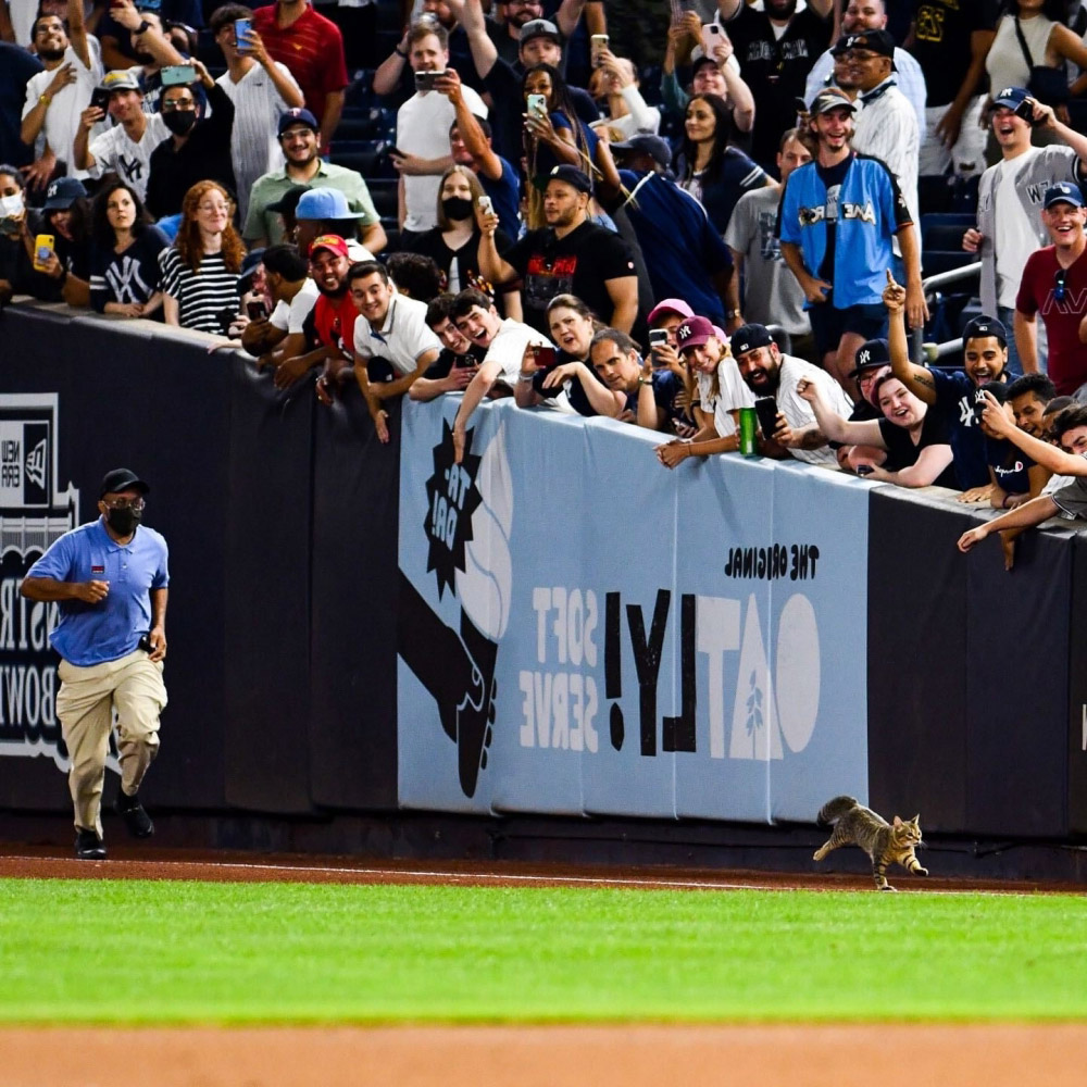 2021年08月11日這隻貓貓很有運動天賦~東京奧運正如火如荼進行中,與此同時,美國職棒大聯盟比賽也開幕了!不久前,紐約洋基隊跟巴爾的摩金鷹隊在洋基主場比賽時,現場出現了突發情況。一隻浪貓竟闖入球場,7位工作人員對牠圍追堵截,都無法追上牠的腳步。