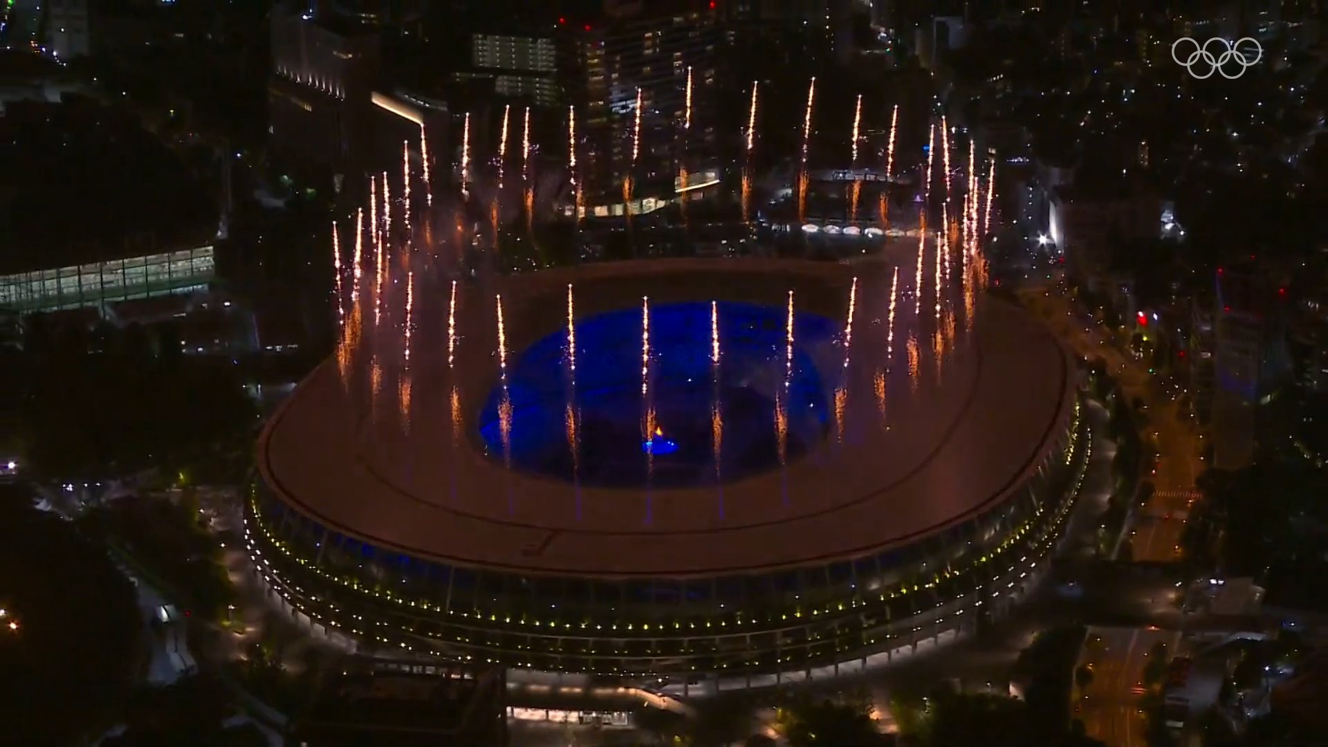 ▼閉幕式上有經典的五環光影秀,《鬼滅之刃》主題曲「紅蓮華」響起時,氣氛更加熱烈。「紅蓮華」獲日本唱片協會認證「三白金」、「百萬」認證,還在第34屆日本金唱片大獎中獲得最佳五大下載歌曲獎。不過閉幕式上,這首歌改由日本全國的學生樂團以播片形式合演,原曲演唱者LiSA沒有出場。