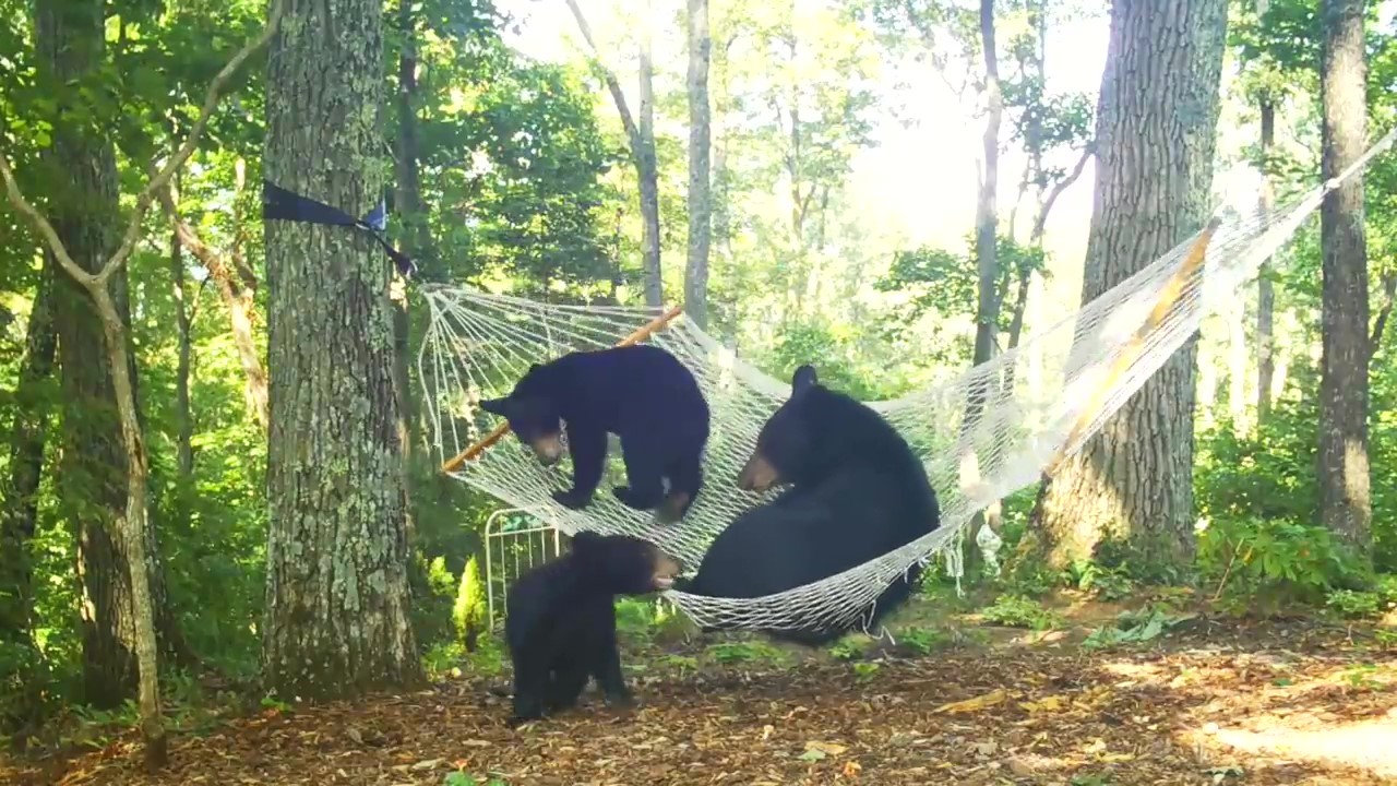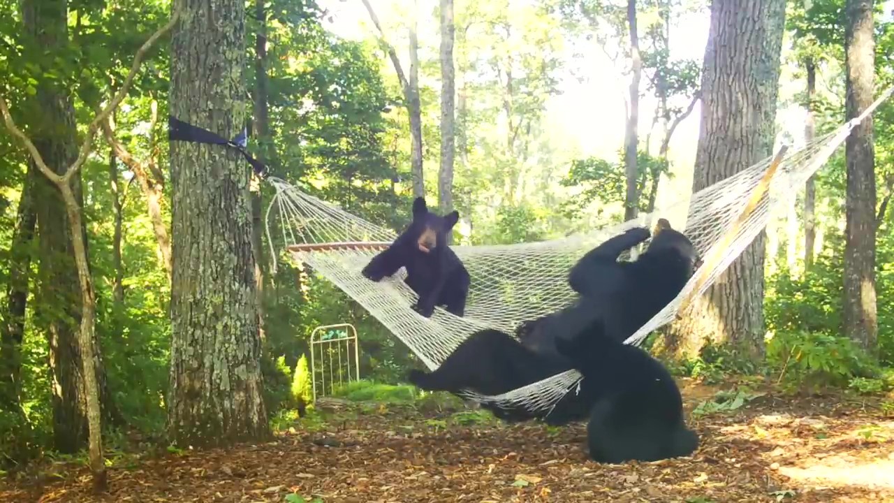 2021年08月11日在野外看到熊,人們都會瑟瑟發抖,其實熊也有可愛的一面!美國北卡羅萊納州網友Amy D.White住在郊區,她家附近經常有野生動物出沒,還會有動物跑到她家後院來玩。有一天一隻熊媽媽帶著2隻小熊到她家作客,她用攝影機紀錄下了「熊熊一家」玩吊床的有趣場景。