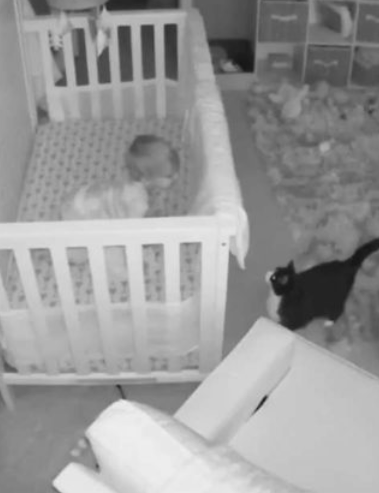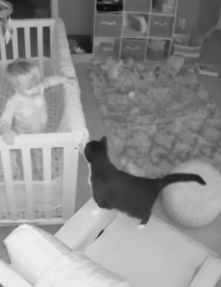 半夜不睡覺!監視器拍下萌貓「與寶寶對喵」 網笑:奴才從小養起!