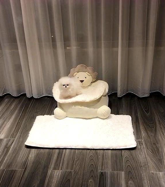 ▼主人對小博美非常好,經常給牠買玩具,還給牠準備了專屬的沙發。平時小博美可以坐在沙發上看電視、睡覺。主人工作很忙,不能24小時陪伴在牠身邊,但主人給狗狗準備了很多東西,讓牠自己待在家也不會無聊。
