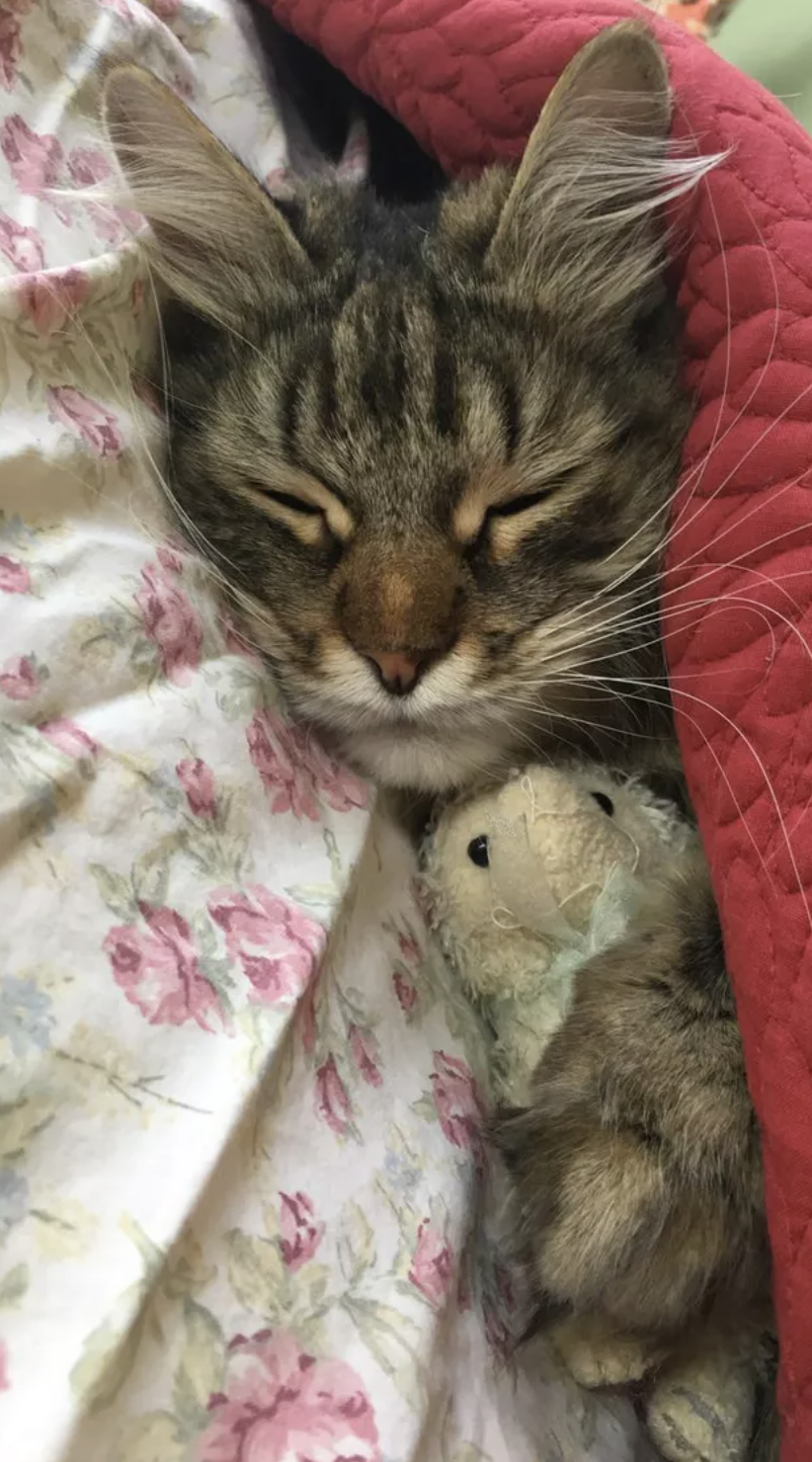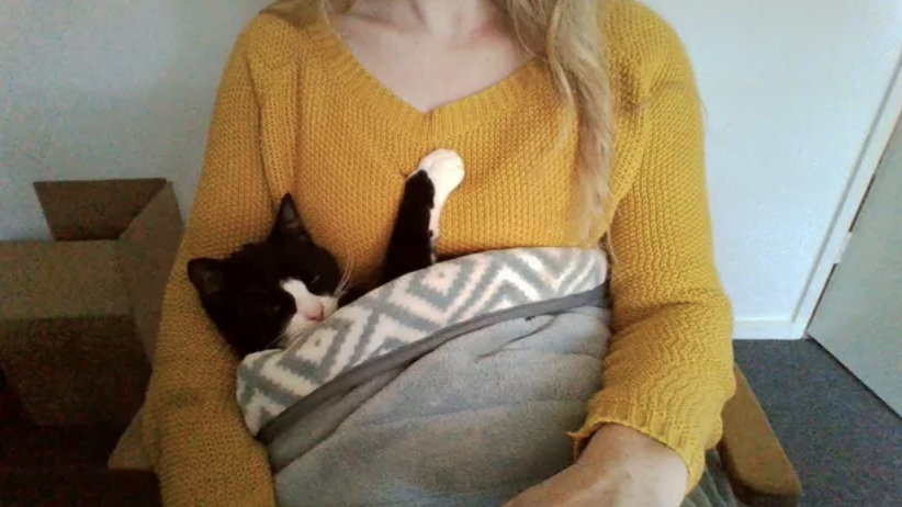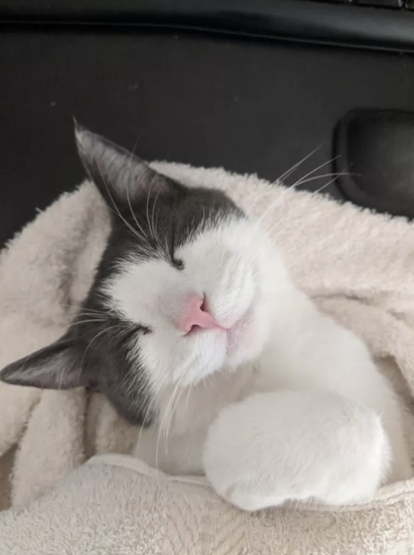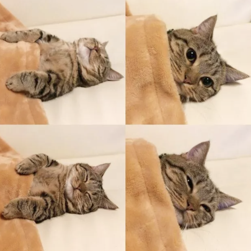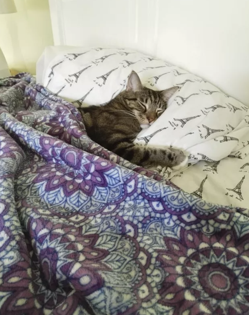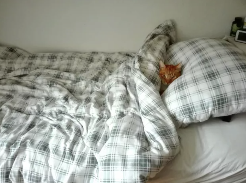 ▼「我們剛剛認識的時候,我老公並不愛貓。現在他每天早上上班前,都會給我家貓咪蓋上毯子。」
