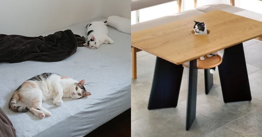 很多養貓的人都遇到過這樣的困擾:你想跟貓咪一起玩的時候,牠態度不屑、毫不猶豫拒絕;當你要趕報告、工作加班的時候,貓咪卻主動跑來湊熱鬧。日本推主@miki_m_1102養了3隻貓咪,最近他發現了一款超可愛的人貓共用桌 ,那神奇的設計能讓你忙工作的同時,還能跟貓咪一起玩!