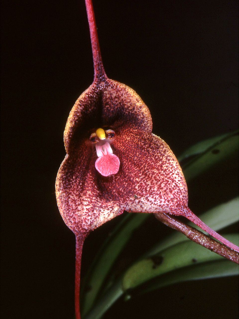 ▼20世紀70年代末,植物學家Carlyle Luer在厄瓜多的熱帶雨林中發現了這種蘭花。它的花朵像猴子的臉,花蕊看起來像猴子的眼睛、嘴巴,再加上毛狀突起,這才有了猴子蘭花這個名字。