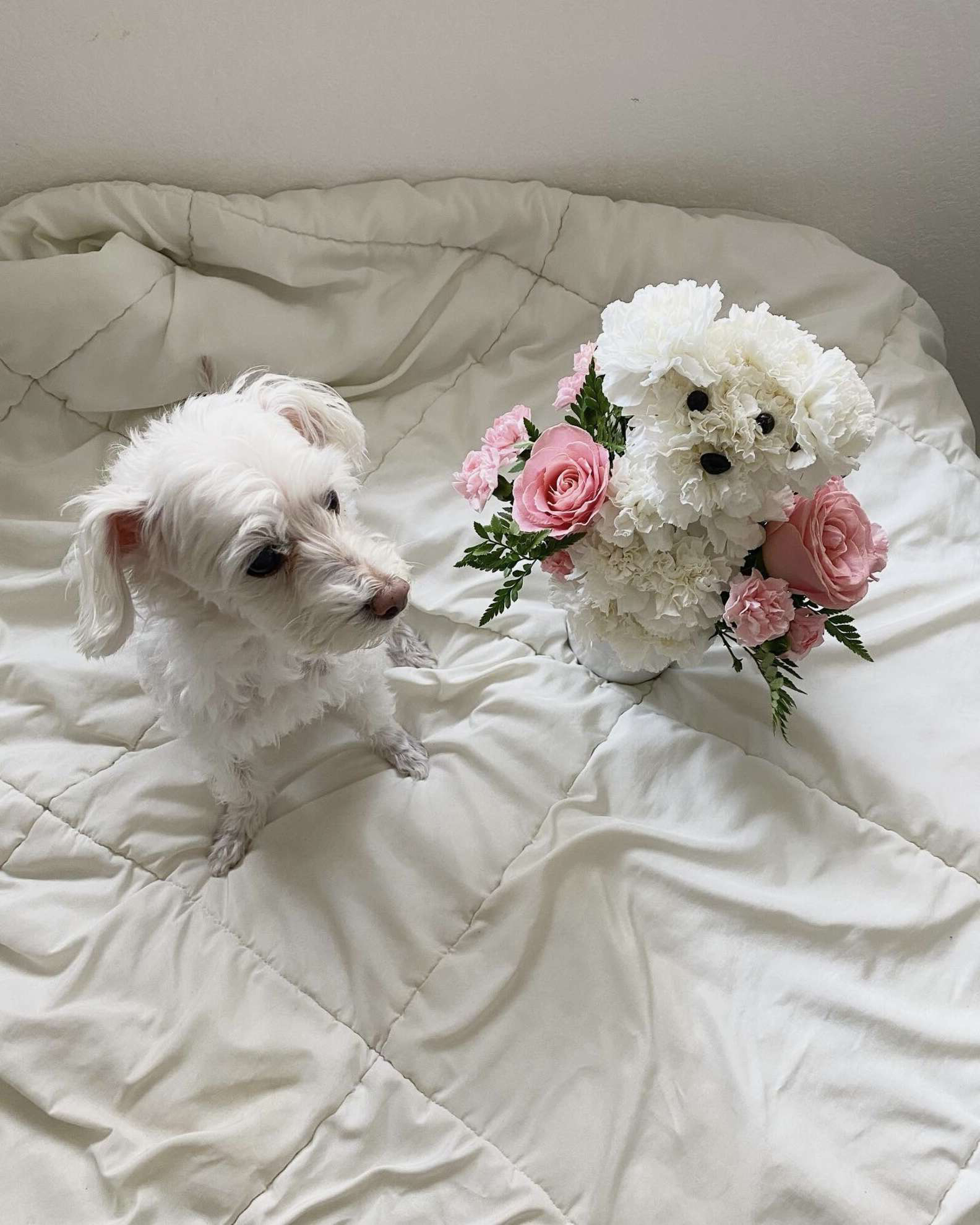 女友愛狗又愛花!貼心男友「送出神複製」 旁邊愛犬困惑:給偶的嗎?