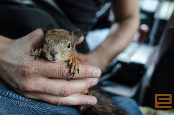 ▼Pyotr和Masik之間的緣分還要從幾年前說起。Pyotr當兵時偶然在野外撿到了一隻孤兒小松鼠,小松鼠非常虛弱,不知道能不能活下來。善良的Pyotr將牠帶回去,每天用注射管餵奶給小松鼠。一段時間後,小松鼠終於健康長大了,那就是Masik。