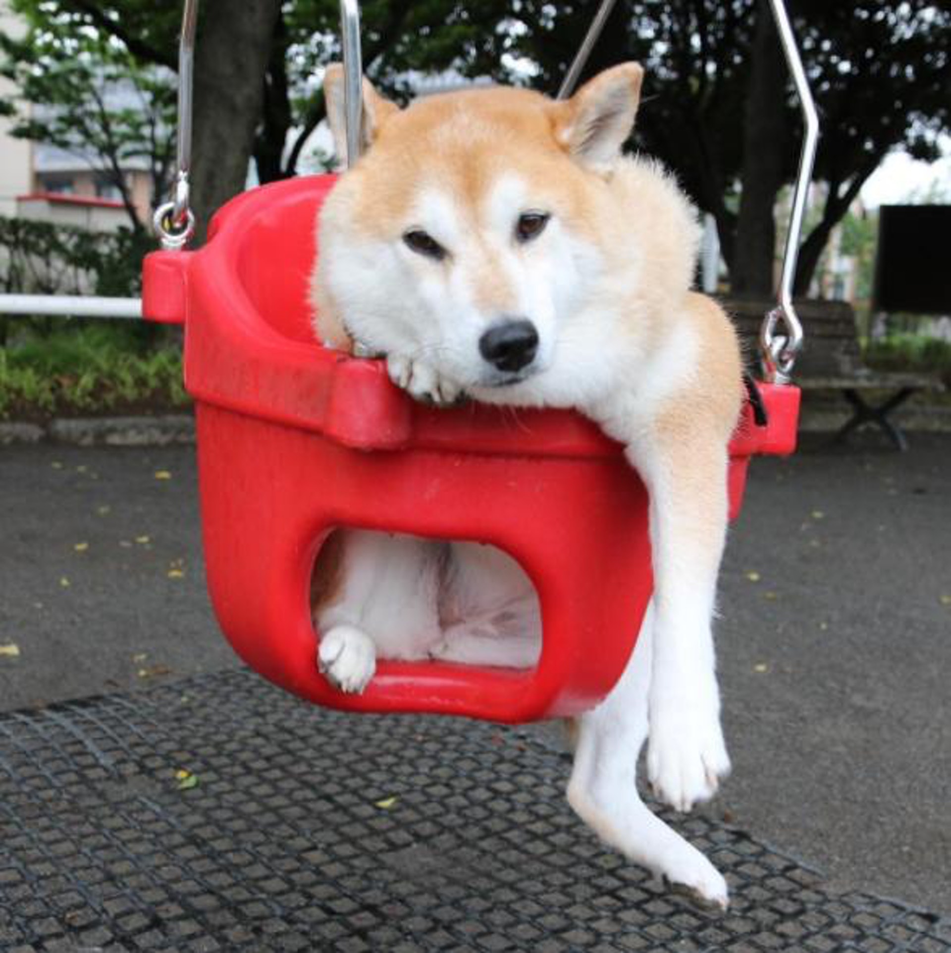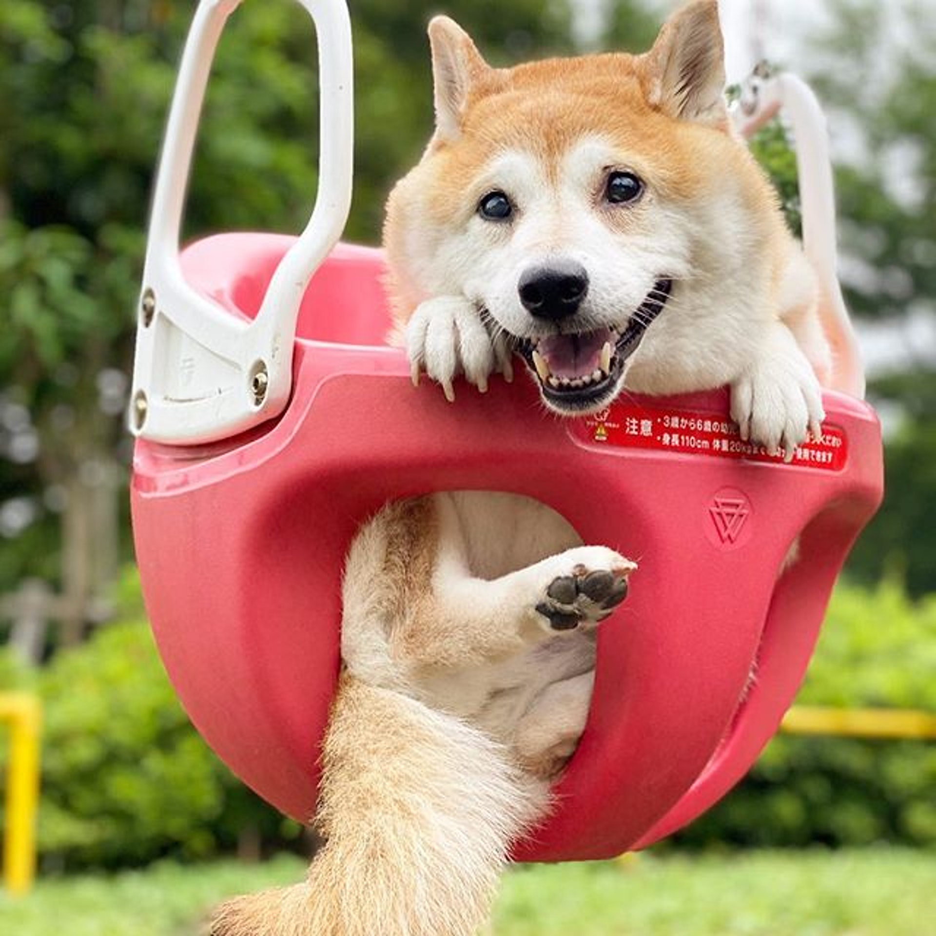 柴柴「最愛盪鞦韆」吐舌爽笑 主人一停止秒變臉:別偷懶,繼續推啊!