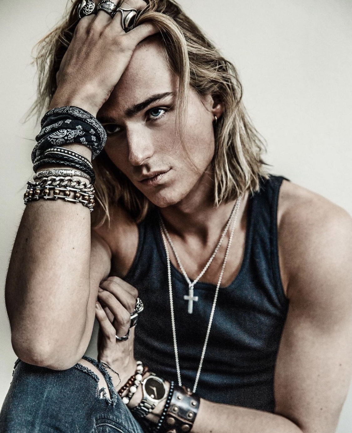 ▼Luke身材纖細,留著一頭金色的中長髮,經常以魅惑的形象出現在鏡頭前。但他身高188公分,身材壯碩,很有男性魅力。他能適應各種不同的造型、風格,開啟狂野模式後,那種脆弱的感覺瞬間消失,反而展現出男人味十足的反轉魅力。