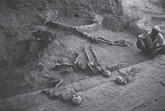 ▼考古學家們在古城遺址內找到246副人類遺骸,其中的2副非常特別。賓大教授Robert Dyson說:「我們在一個穀倉裡發現了一個泥磚箱,打開之後竟看到裡面有兩副骸骨。兩人面對面,頭靠在一起,左邊的男人讓右邊的女人枕在自己的手上,而女人用雙手捧著男人的臉頰、親吻祂,我們猜想祂們在躲避外面的大火,女人為了讓男人多吸一口氣才有親吻動作,或者兩人用親吻道別。」