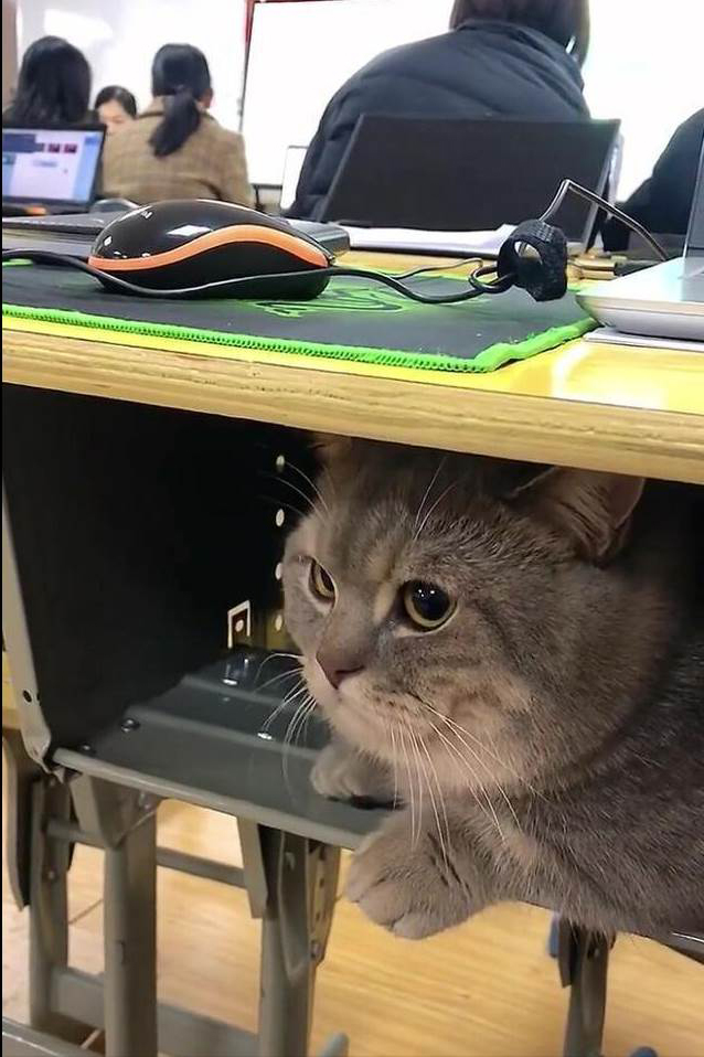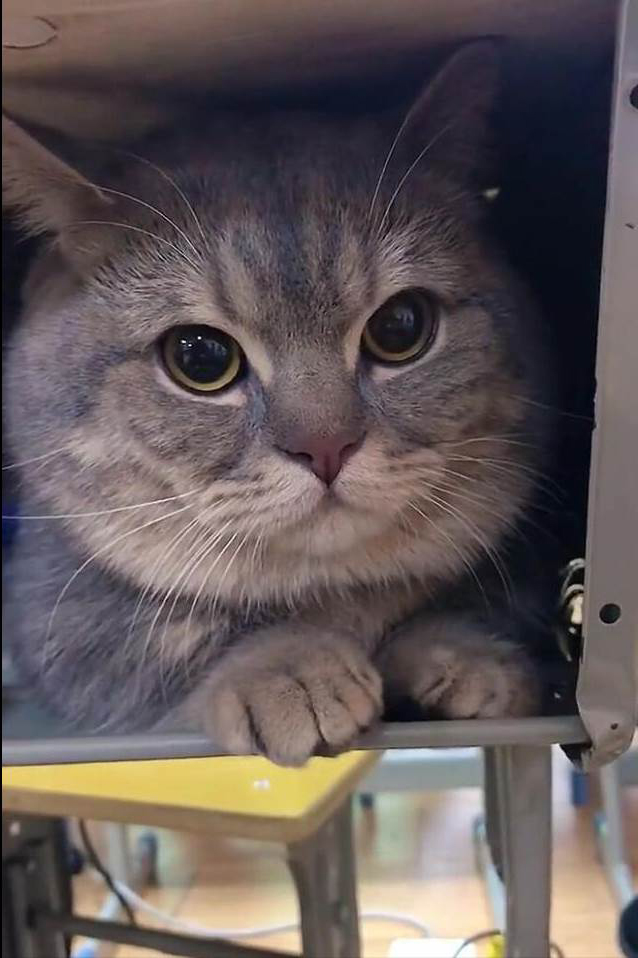 不想跟主人分開!黏人貓緊跟去教室 躲抽屜偷偷探頭:都聽不懂耶~